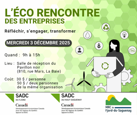 L’Éco-rencontre 2025 est une première édition d’un événement d’une journée entièrement dédié au développement durable en entreprise. Destiné aux dirigeants et gestionnaires, il vise à les sensibiliser aux enjeux ESG (environnementaux, sociaux et de gouvernance) et à les outiller pour amorcer une démarche structurée vers des pratiques d’affaires écoresponsables.